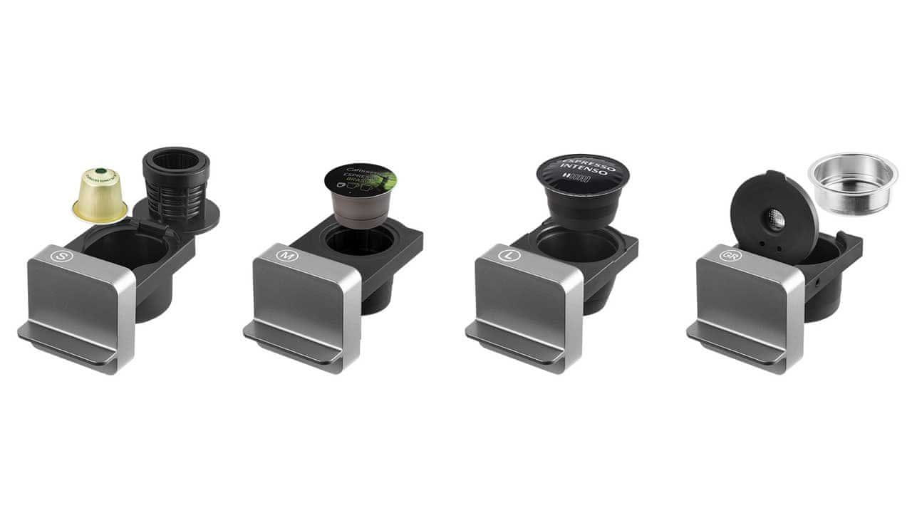 Tri velikosti prostora za kapsule: S – velikost kapsul Nespresso M – velikost kapsul Tchibo L – velikost kapsul NESCAFÉ Dolce Gusto