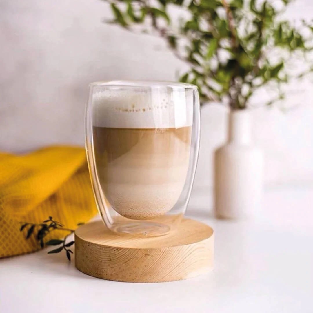 FOREVER SET KOZARCEV ZA CAPPUCCINO – 2 × 200 ml sta izdelana iz dvojnega borosilikatnega stekla, ki je primeren za postrežbo toplih napitkov. Steklo kljubuje temperaturnim šokom, zato lahko vanj brezskrbno nalijete vročo kavo, kakav, čaj ali vročo čokolado. Celoten opis