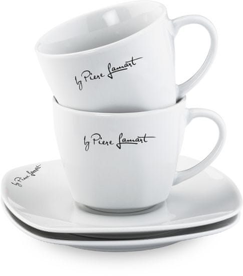 Komplet dveh skodelic s krožničkom in prostornino 190 ml elegantno dopolnjuje avtogram francoskega kuharja Piera Lamarta, ki slovi po svoji dobrosrčnosti in predvsem odlični kuhinji na bretonski obali. Celoten opis
