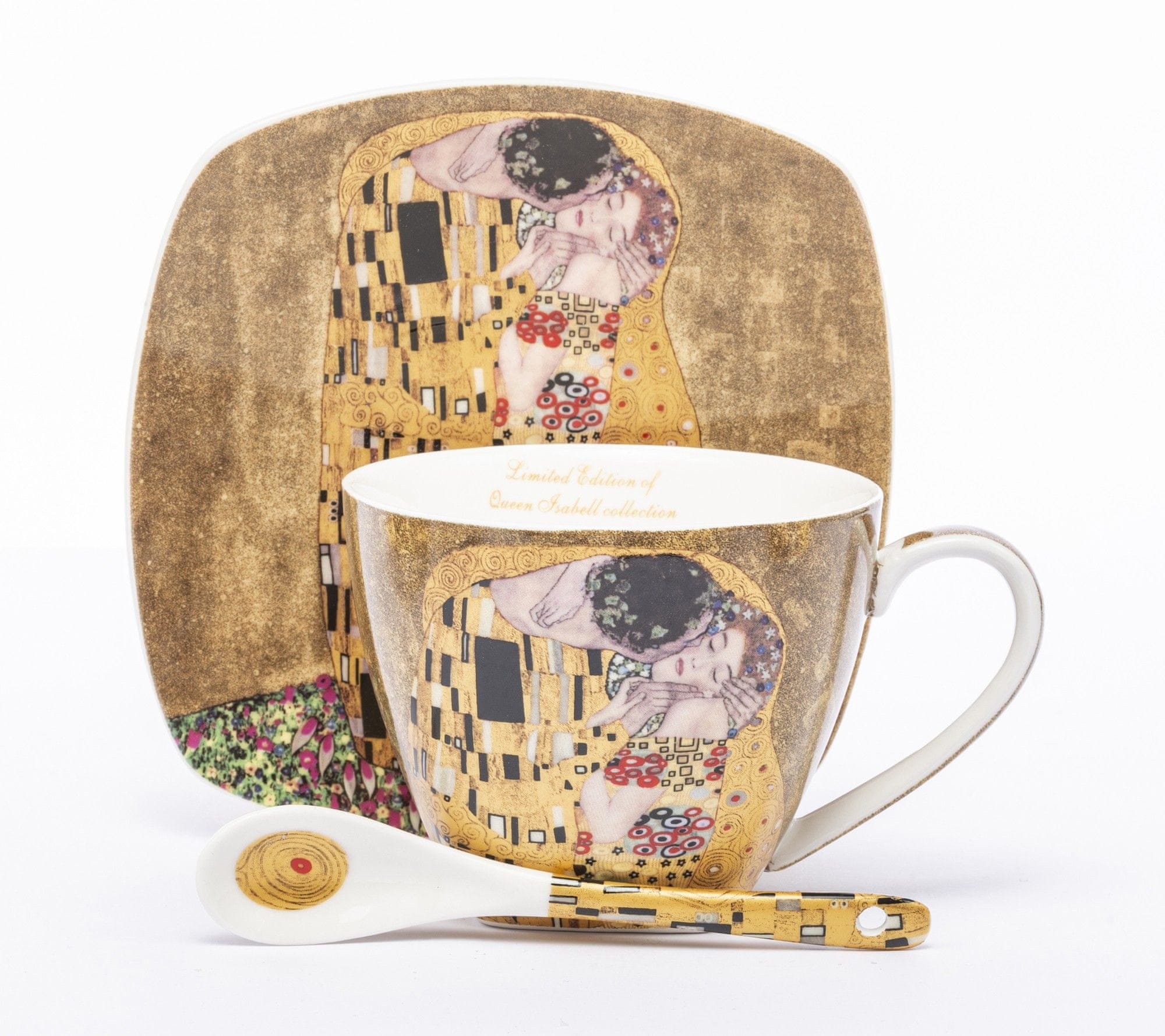 Porcelan 21 delni kavni komplet dekor Klimt Poljub