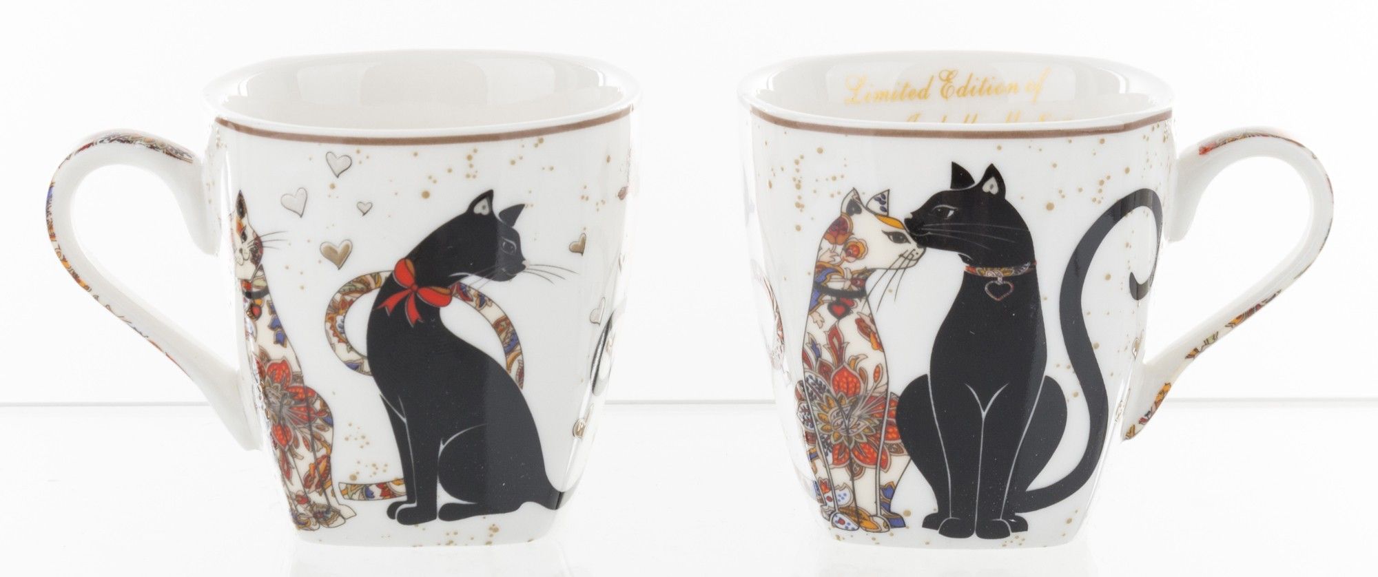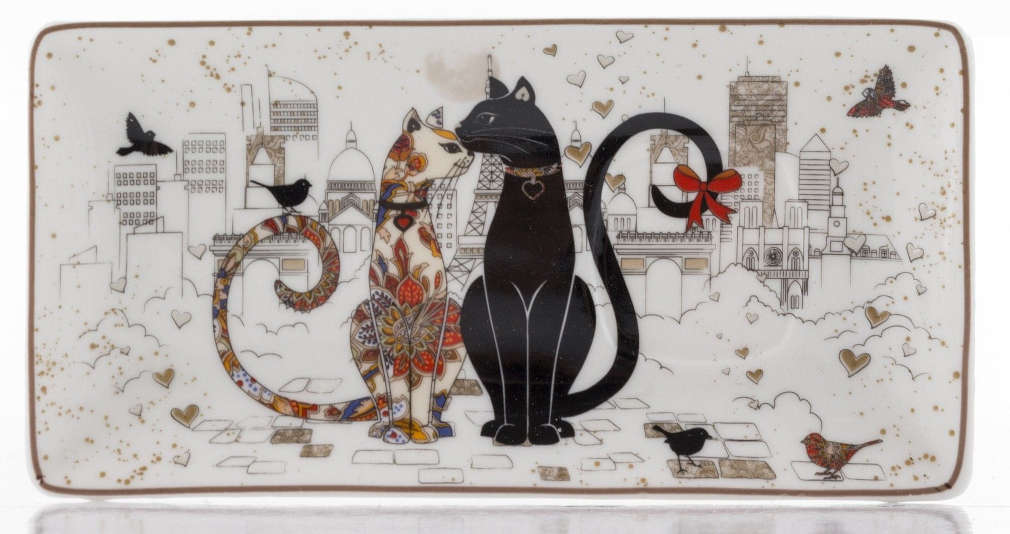 Komplet za espresso iz porcelana z dekorjem Mačke Dimenzija podstavek 1,5×17×9 ,skodelica 5,5×7,5×5,5 cm Teža kompleta 0,64 kg. Vsebina skodelice 80 ml. Celoten opis