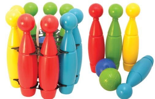 Velik barvit bowling set za otroke z 10 lahkimi keglji in 1 žogo. Odličen za razvijanje koordinacije in gibanja pri otrocih od 3. leta starosti dalje. Primeren za igro v zaprtih prostorih in na prostem.