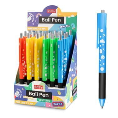 EASY VENTURIO Kroglično pero, modra polželezna kartuša, 0,7 mm, 24 kosov v pakiranju, rdeče-rumeno-modro-zelena