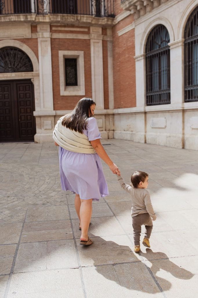 Vključena navodila. Prepričajte se, da je povoj za dojenčka čvrst in zagotavlja varno oporo dojenčku. Njegov obraz naj bo viden in v višini, v kateri ga lahko poljubite. Zagotovite prostor med njegovo brado in prsmi ter podprite njegov naravno ukrivljen hrbet.