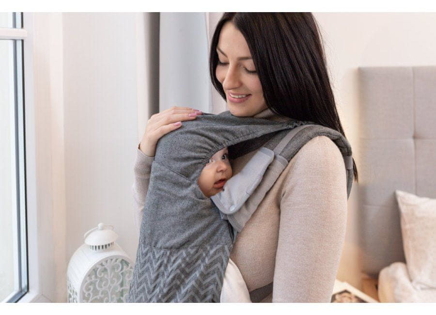 Kapuca z oblazinjenjem – zagotavlja zaščito pred soncem, vetrom ali dežjem in ohranja pravilen položaj glave snemljivi pasovi – lahko jih snamete in operete izdelana iz kakovostnega bombaža, ki je nežen do kože in zagotavlja pravilno kroženje zraka dvojna zapora na hrbtnem pasu za največjo varnost 3 možnosti nošenja, prilagojene otrokovi starosti