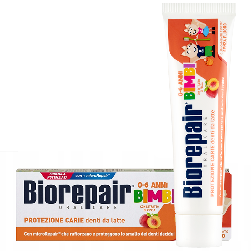 Zobna pasta za otroke 0–6 let Biorepair Kids brez fluorida breskev 50 ml