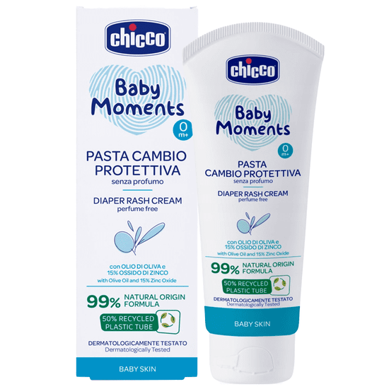 Uporaba kreme Chicco od prvih dni otrokovega življenja učinkovito preprečuje razvoj pleničnega izpuščaja in draženja, kar je ključnega pomena za ohranjanje zdrave kože. Redna uporaba kreme pomaga ohranjati ustrezno hidracijo in podpira naravne procese regeneracije kože.