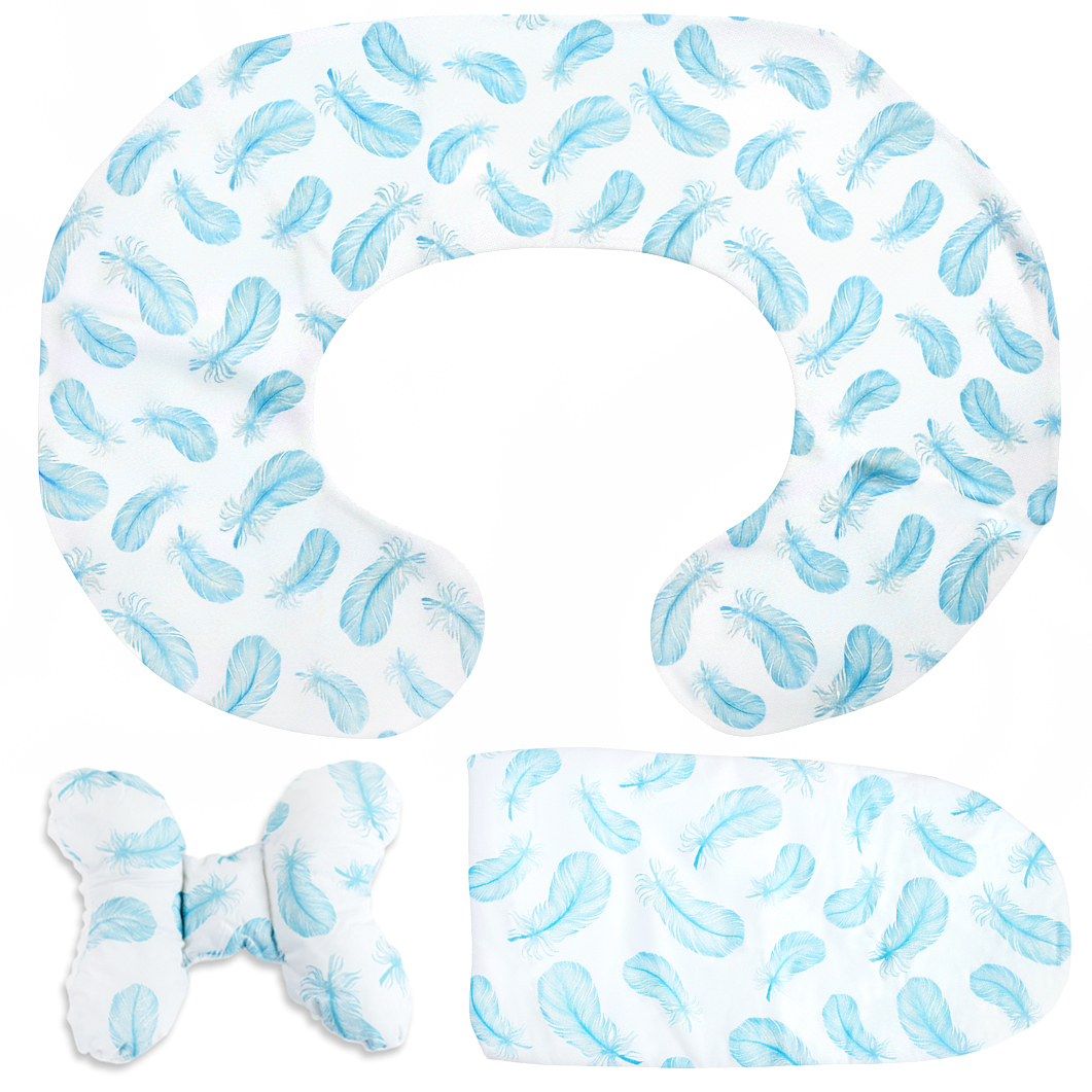 Udobna prevleka za vzglavnik z nežnim vzorcem modrega perja je praktična in estetska rešitev, ki bo popolna tako doma kot na potovanjih. Komplet vsebuje prevleko za vzglavnik v obliki polmeseca, prevleko za vzglavnik v obliki metulja in blazino za voziček ali zibelko – vse je izdelano iz mehkega, prijetnega materiala na dotik.