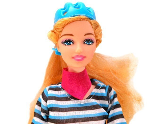 Dolgonoga lutka je oblečena v hlače, visoke škornje, bluzo in šal za vrat. Ima dolge, plapolajoče lase, tako da bo otrok lahko ustvaril najlepše pričeske, ima tudi čelado, tako imenovano konjsko tocko.