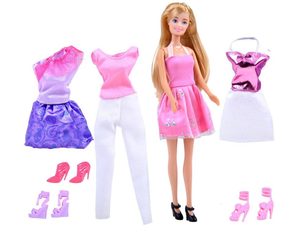 Obleke lutke lahko okrasite z nalepkami, ki so priložene v kompletu. Celoten komplet bo seveda dopolnjen z dodatki, kot so torbica in čevlji s peto. Lutka ima gibljive okončine, je izdelana iz plastike in ima gumijast obraz. Komplet je zapakiran v privlačno embalažo in je kot nalašč za darilo za malo princesko.