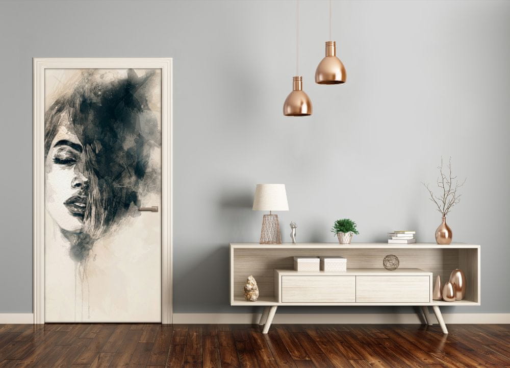 Nalepka za vrata Abstrakcija ženska je unikatna dekoracija, zaradi katere lahko hitro in poceni obnovimo ne le vrata, ampak tudi aranžma sobe Celoten opis