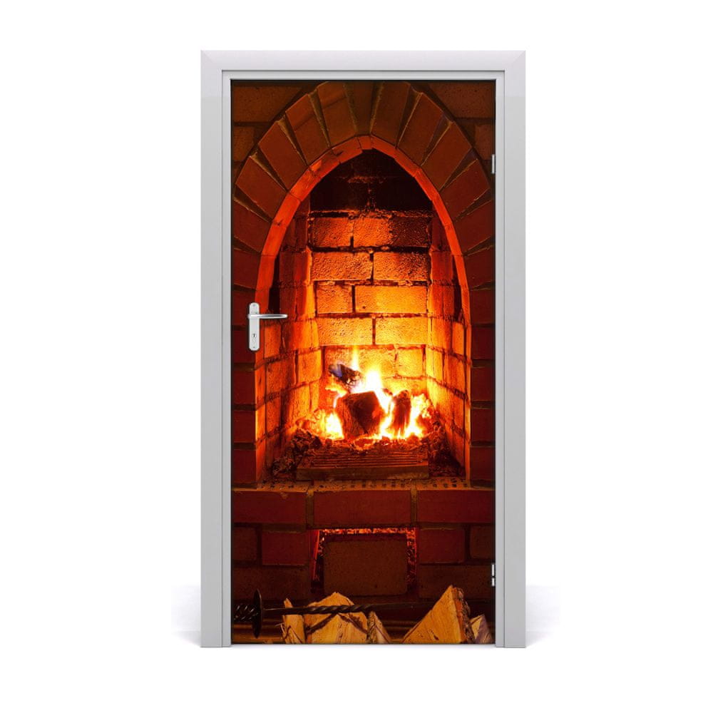 tulup.si Samolepilni tapete na vratih Ogenj v kaminu 95x205 cm