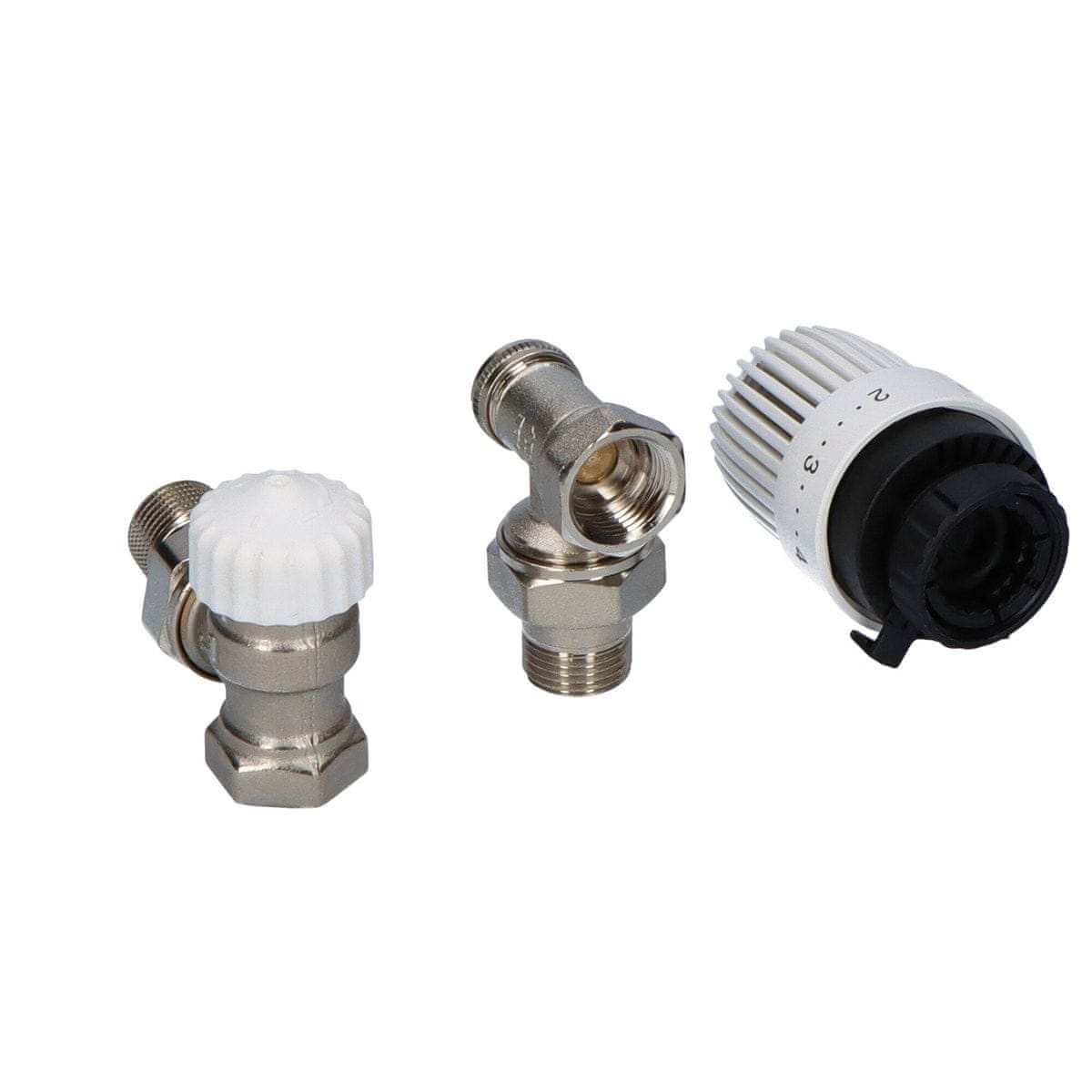 shumee Termostatski komplet za radiatorje s stranskim napajanjem: termična glava S + natančni termični ventil Calypso s prednastavitvijo + zaporni ventil za radiator