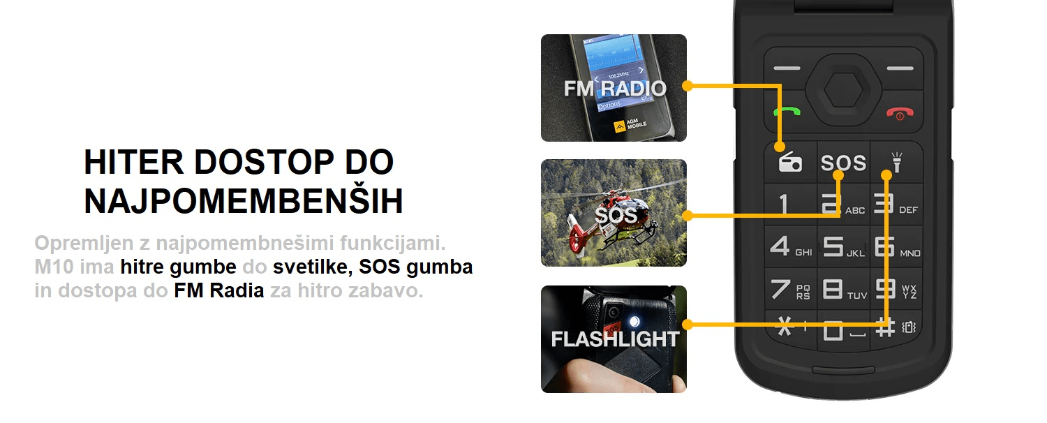 AGM je priznani proizvajalec odpornih telefonov iz Nemčije, ki ponuja izjemno zanesljivost in dolgo življenjsko dobo baterije. S 4G povezljivostjo, 2,8-palčnim zaslonom in robustno zasnovo je AGM M10 FLIP idealna izbira za tiste, ki potrebujejo trpežen telefon za vsakodnevno uporabo. Celoten opis