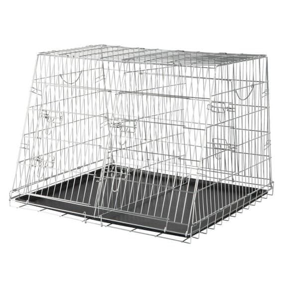 Zložljiva žična kletka z vrati. Velikost: 106 × 69 × 77 cm. – Enostavna montaža – Idealna za potovanja – Optimalno prezračevanje – Zagotavlja popoln pregled nad živaljo v kletki – Kletka je varna in zanesljiva – Vključno s plastičnim odstranljivim dnom.