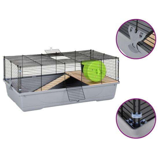 Vidaxl Kletka za hrčke siva 80x45x34 cm polipropilen in kovina