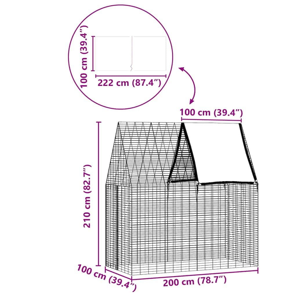 Vidaxl Kletka za zajce srebrna 200 x 100 x 210 cm Cinkana jeklena
