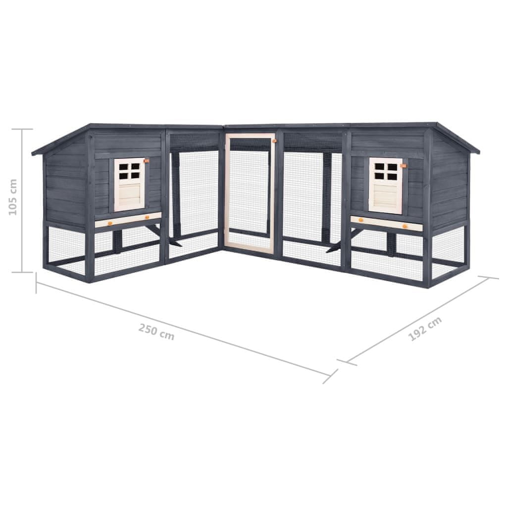 Vidaxl Zunanji zajčnik z izhodom siv in bel les jelke