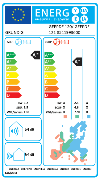Tehnične podrobnosti o GRUNDIG Klimatski napravi GEEPDE 120 / 121