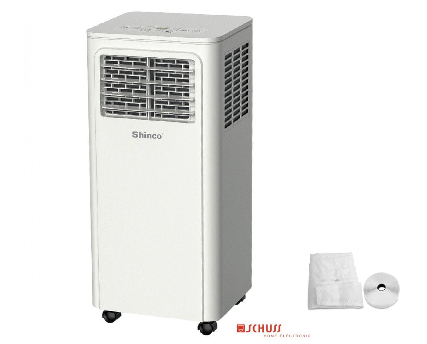 Shinco 7000BTU je zmogljiva prenosna klimatska naprava razreda A, zasnovana za hitro in učinkovito hlajenje prostorov do 18 m². Ponuja tri funkcije v eni napravi – hlajenje, prezračevanje in razvlaževanje – ter omogoča nastavitev temperature med 16 °C in 30 °C. Z LED-zaslonom, 24-urnim časovnikom in priročnim daljinskim upravljalnikom zagotavlja popolno udobje uporabe. Zaradi uporabe naravnega hladilnega sredstva R290 je okolju prijazna, energetsko učinkovita in tiha, idealna za spalnice, pisarne ali manjše dnevne prostore.