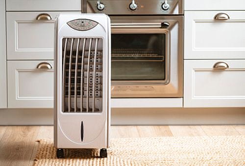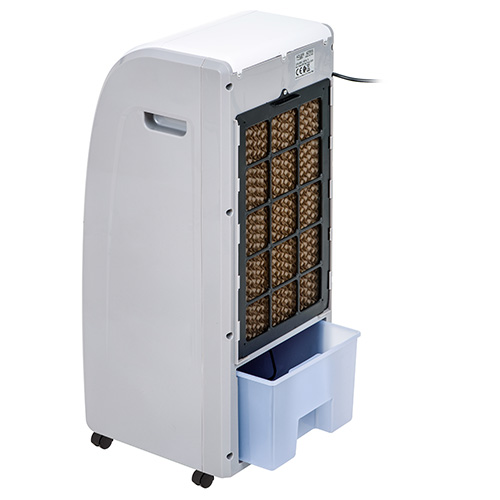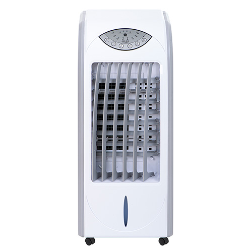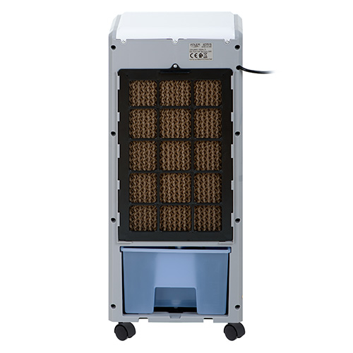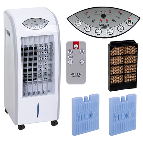 Večnamenski, visokozmogljiv hladilnik zraka. Funkcije hlajenja, vlaženja in celo čiščenja zraka ga naredijo odličen dodatek za vsak pisarniški prostor. Uporabniki lahko izbirajo med tremi hitrostmi pretoka zraka. Hladilnik ima vgrajen 7-litrski rezervoar za vodo. Dve priloženi posodi z gelom, ki ju je mogoče zamrzniti v hladilniku in nato prenesti v rezervoar za vodo, omogočata napravi učinkovito hlajenje in vlaženje zraka. Za udobje je priložen daljinski upravljalnik. Napravo je mogoče nastaviti tudi na določen čas delovanja, zahvaljujoč vgrajenemu časovniku – do 12 ur.