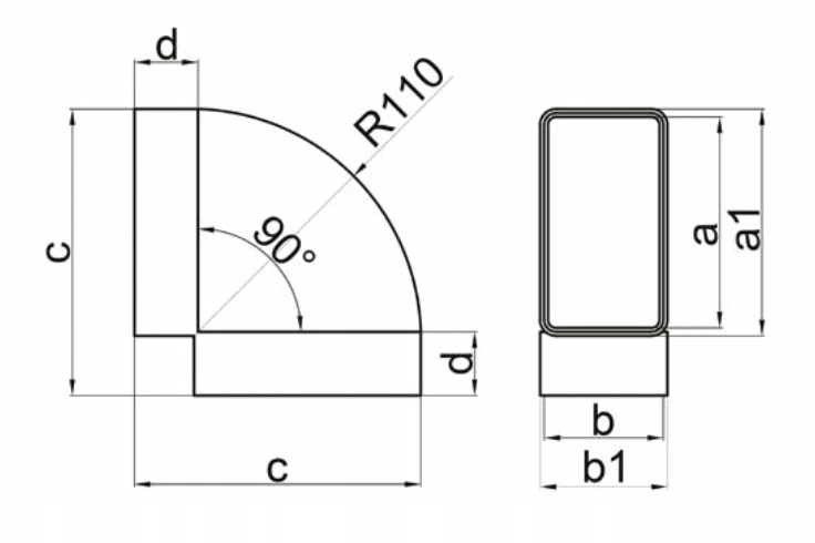 Horizontalno koleno 90 stopinj 110×55mm ZRAČNIKI Celoten opis