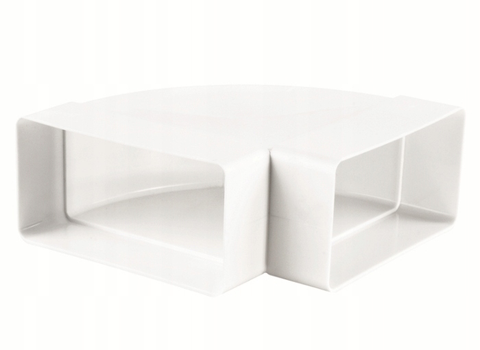 sistema prezračevalnih kanalov Vodoravno koleno 110×55 – 90 stopinj je eden od elementov modularnega sistema ploščatih kanalov iz PVC-ja,
