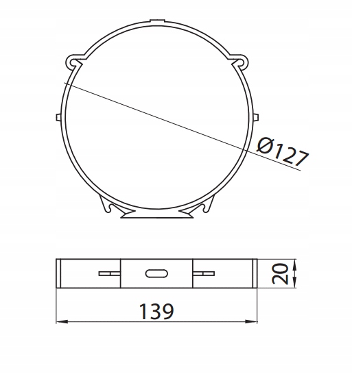 okroglih kanalov na površino. Nosilec je sestavljen iz dveh delov z zapiranjem na klik.