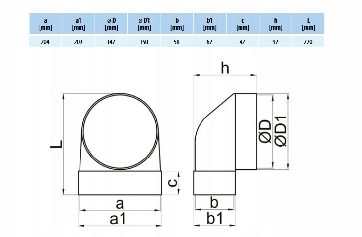 Ploščato koleno 204×60 za kanal 150 mm je eden od elementov modularnega okroglega kanala iz PVC-ja, za katerega je značilen nizek upor pretoka zraka. Lahka konstrukcija, estetski videz in enostavna namestitev – kar omogoča sestavo sistema brez uporabe specializiranega orodja – so nedvomne prednosti tega izdelka.
