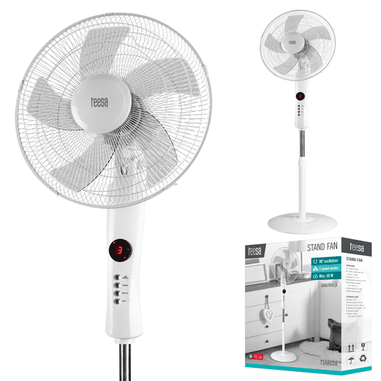 Ne veste, kako ohladiti svojo sobo na vroč dan? Izberite Teesa ventilator na podstavku z daljinskim upravljanjem, ki bo učinkovito poskrbel za pretok zraka v vaši sobi in poskrbel za olajšanje v vročem vremenu.