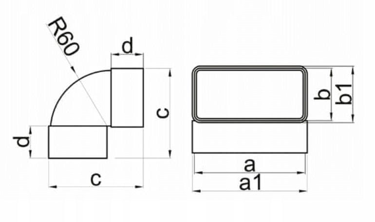 Navpično koleno 90° za ploščati kanal 204×60 je eden od elementov modularnega sistema ploščatih kanalov iz PVC-ja, , ki je zaradi svojih prečnih prerezov idealen na primer za vgradnjo v mavčno-kartonske stavbe. Lahka konstrukcija, estetski videz in enostavna namestitev – kar omogoča sestavljanje sistema brez uporabe specializiranega orodja – so nedvomno prednosti tega izdelka.