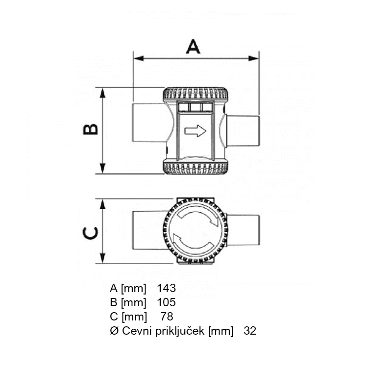 • Cevni priključek Ø32 mm