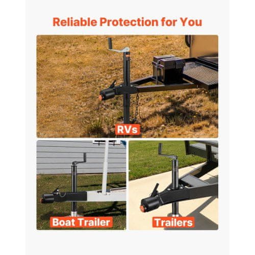 VEVOR Varnostna ključavnica za prikolico ustreza 586 mm litim krogličnim priključkom težka izvedba 142x175 mm srebrna
