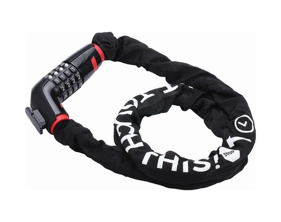 Varnostna ključavnica s 5 mm debelo jekleno verigo.