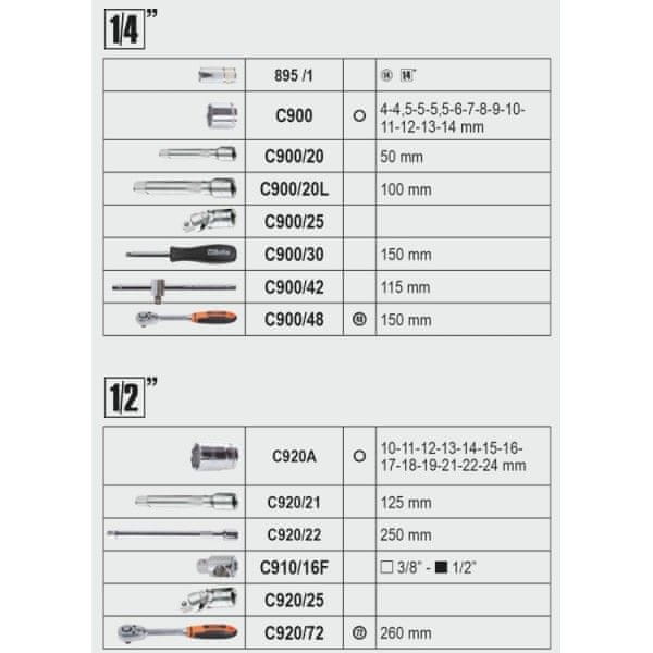 29. 1/2" ključ Beta 42C velikosti: 8–9–10–11–12–13–14–15–16–17–18–19mm