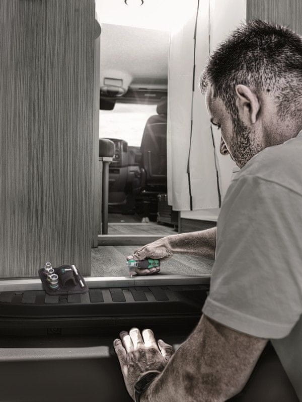 Magnetna neposredna pritrditev omogoča, da se 3/8-palčna vrtavka uporablja kot izvijač za bite z 1/4-palčnim ročajem