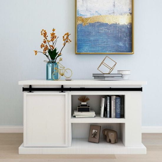 S tem mini kompletom za drsna vrata lahko drsna vrata kuhinje, študijske sobe itd. zapirate ali odpirate tiho in brez napora. Ta komplet vodil za drsna vrata je primeren za skoraj vse vrste dekorja, saj ima kompakten in brezčasen dizajn. Komplet nosilcev za drsna vrata vsebuje 1 drsno vodilo (s skupno dolžino 122 cm) in 2 valja, odporna na obrabo. Drsni vodili sta narejeni iz karbonskega jekla s prašnim premazom, ki je trdno, vzdržljivo in trpežno. Zaradi notranjih ležajev bodo vaša vrata drsela gladko in tiho. Priloženi sta tudi blokadi za vrata, ki valjem preprečujeta, da padejo iz vodil, gumijasti tesnili pa bosta ublažili udarec valjev ter zmanjšali hrup. Opomba: Primerno samo za vrata omare