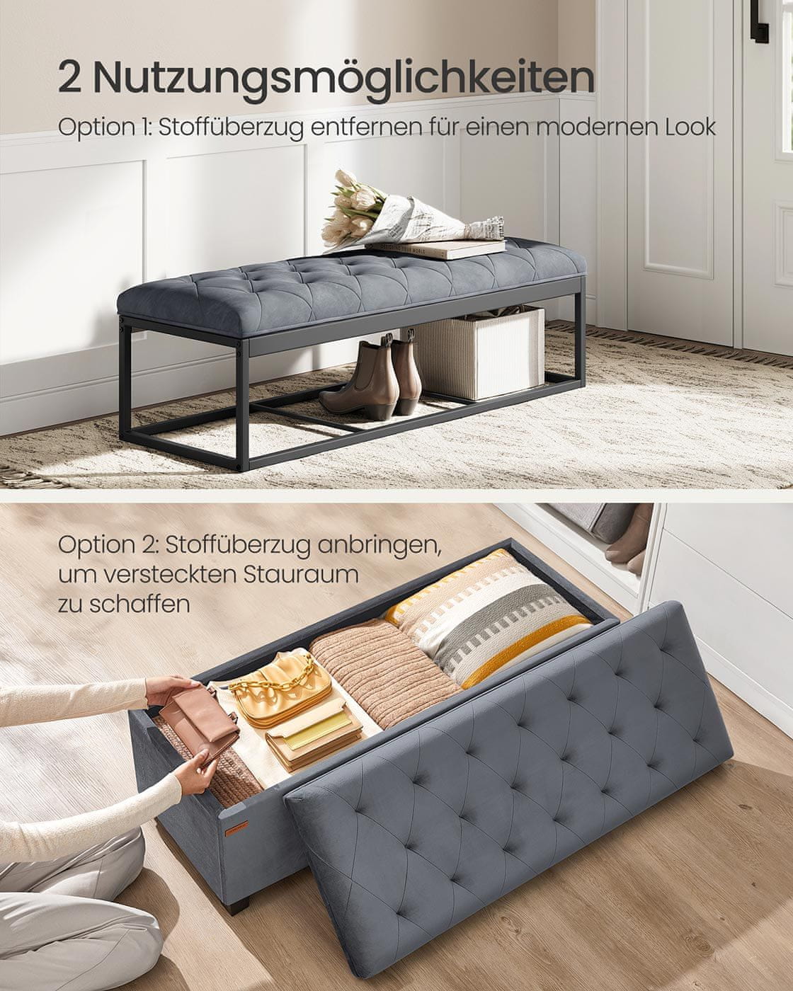 Songmics Shranjevalna otomanska klop 40x110x40 cm siva