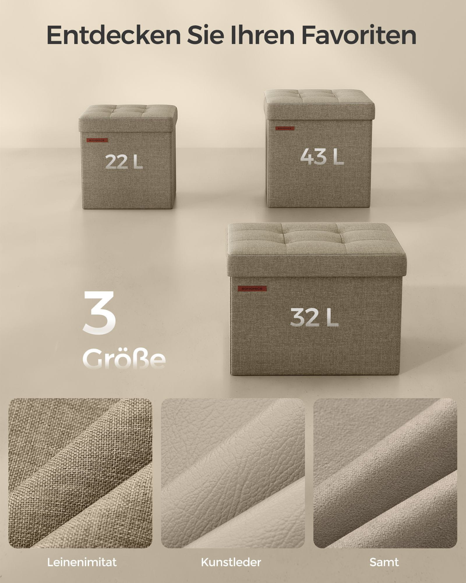 Ta zložljiva shranjevalna otomana je vsestranski dodatek za vsak dnevni ali spalni prostor ki nudi tako sedež kot priročen prostor za shranjevanje. Njena kompaktna zasnova je idealna za majhne prostore medtem ko oblazinjen vrh zagotavlja udobno uporabo kot naslon za noge ali dodaten sedež. Otomana je izdelana iz trpežnih materialov za stabilnost in dolgo obstojnost.