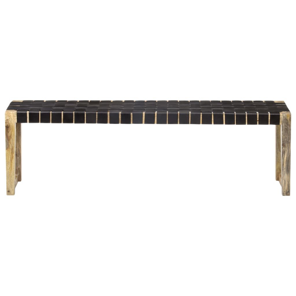 Vidaxl Klop 150 cm črno pravo usnje in trden mangov les