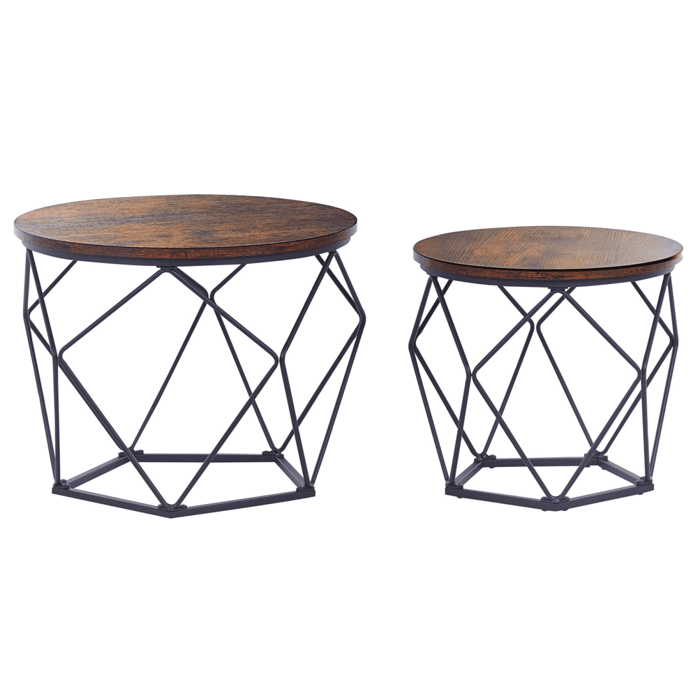 Beliani Garnitura 2 kavnih mizic temni les/črna BRUNI
