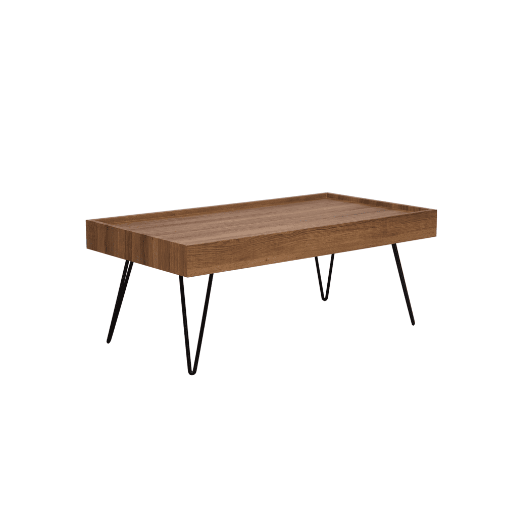 Kavna mizica je bistven del vsake sodobne dnevne sobe. Miza iz plošče MDF, ki posnema les, in jeklene noge bodo poudarile industrijski značaj prostora.
