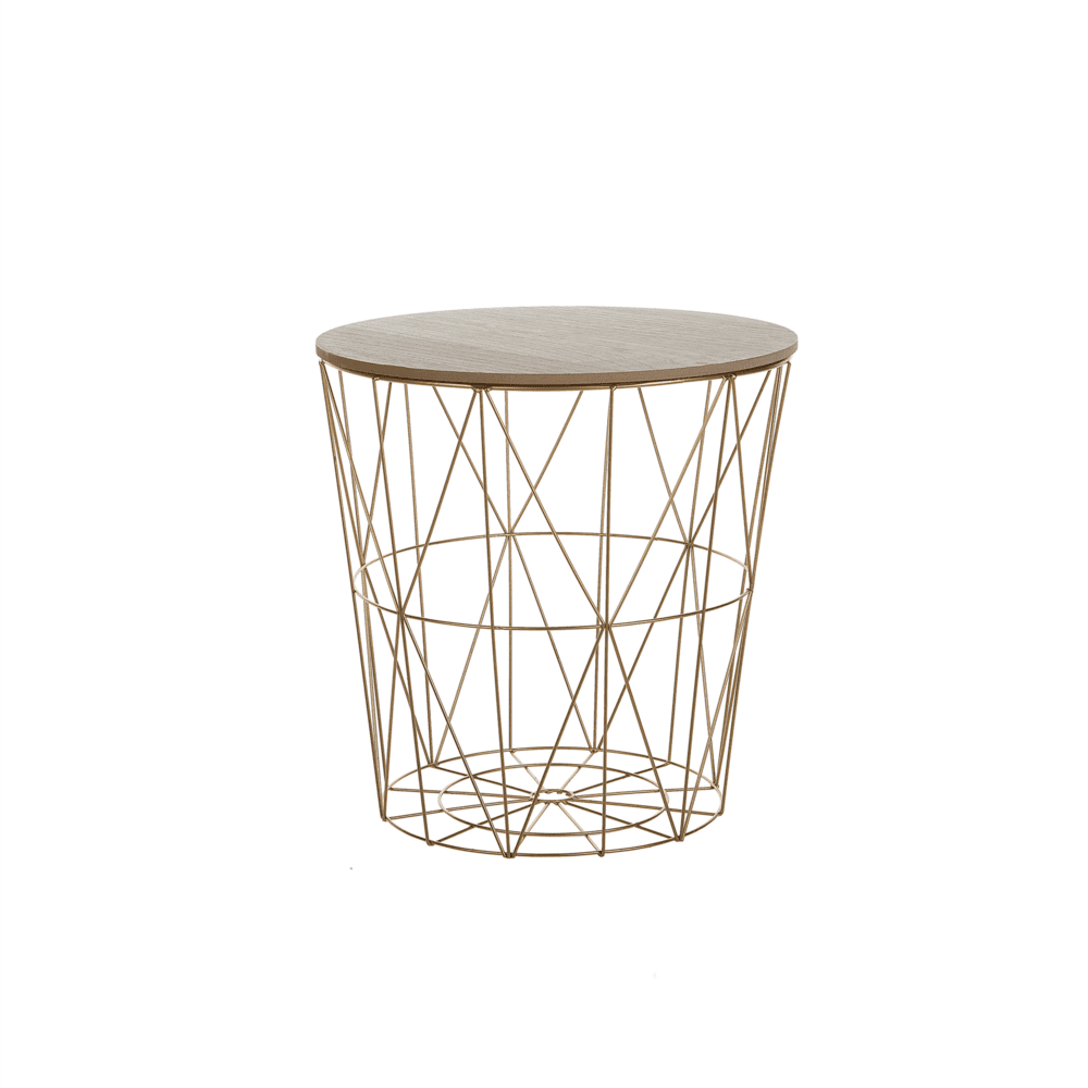 S to edinstveno mizico za kavo v svoj dom vnesite klasičen slog. Zaradi zlate oblike žične košare in zgornjega dela v barvi naravnega lesa je eleganten dodatek za vsako dnevno sobo.