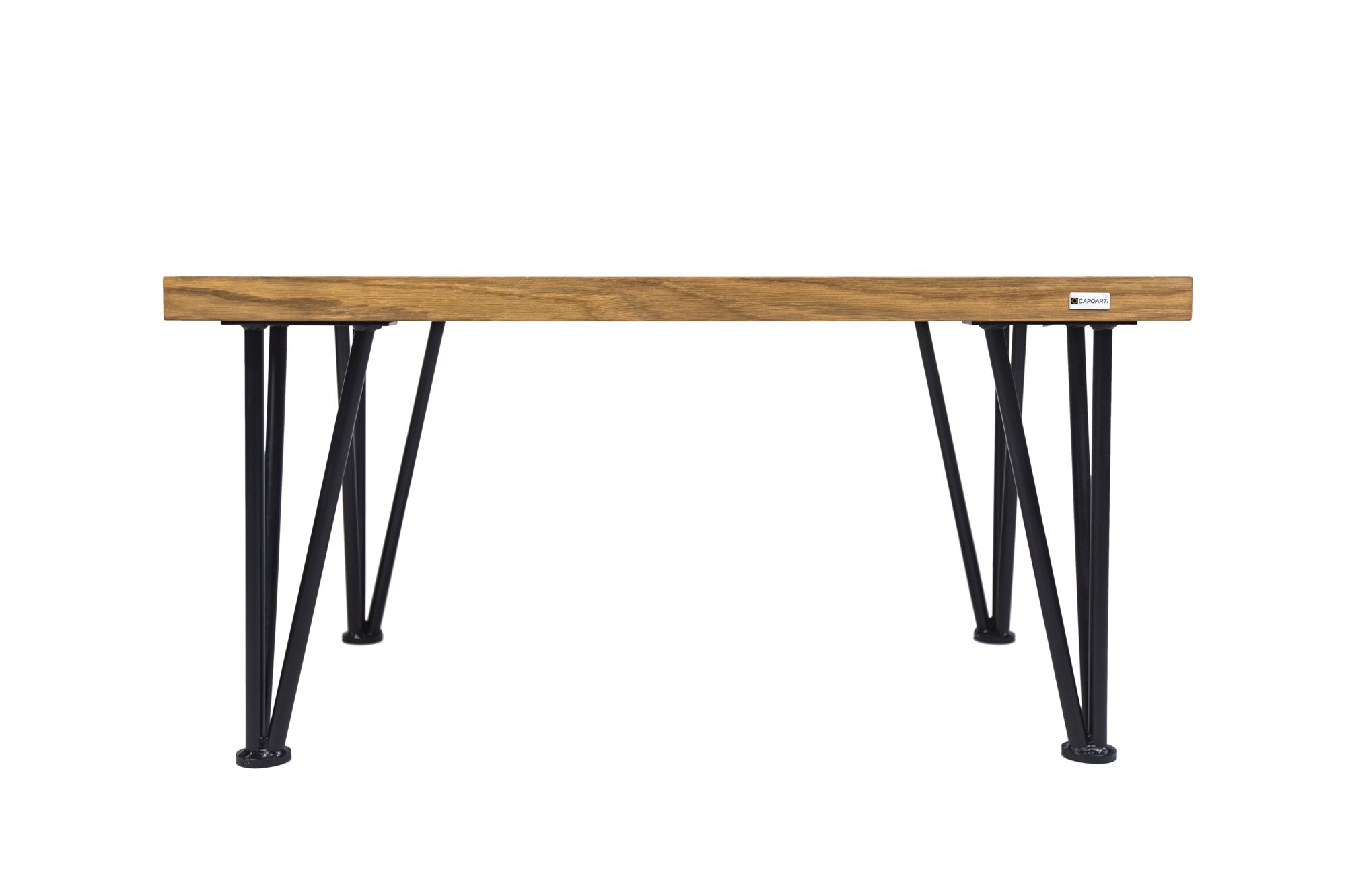 Ročno izdelana lesena klubska miza CAPOARTI®. Sestavljata jo mizna plošča iz hrasta ter štiri črne kovinske noge ‘’hairpin’’. Miza navdušuje s svojo kakovostjo ter skandinavskim videzom in je na voljo v različnih dimenzijah.