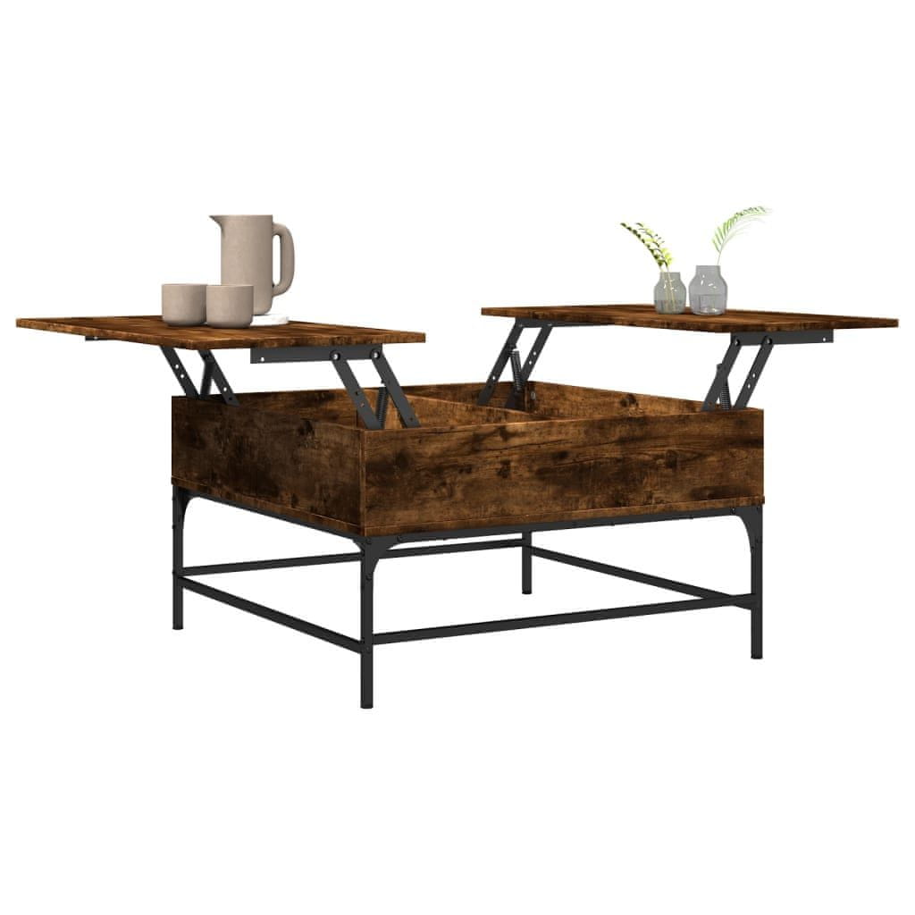 shumee Klubska mizica dimljeni hrast 80x80x45 cm inž. les in kovina