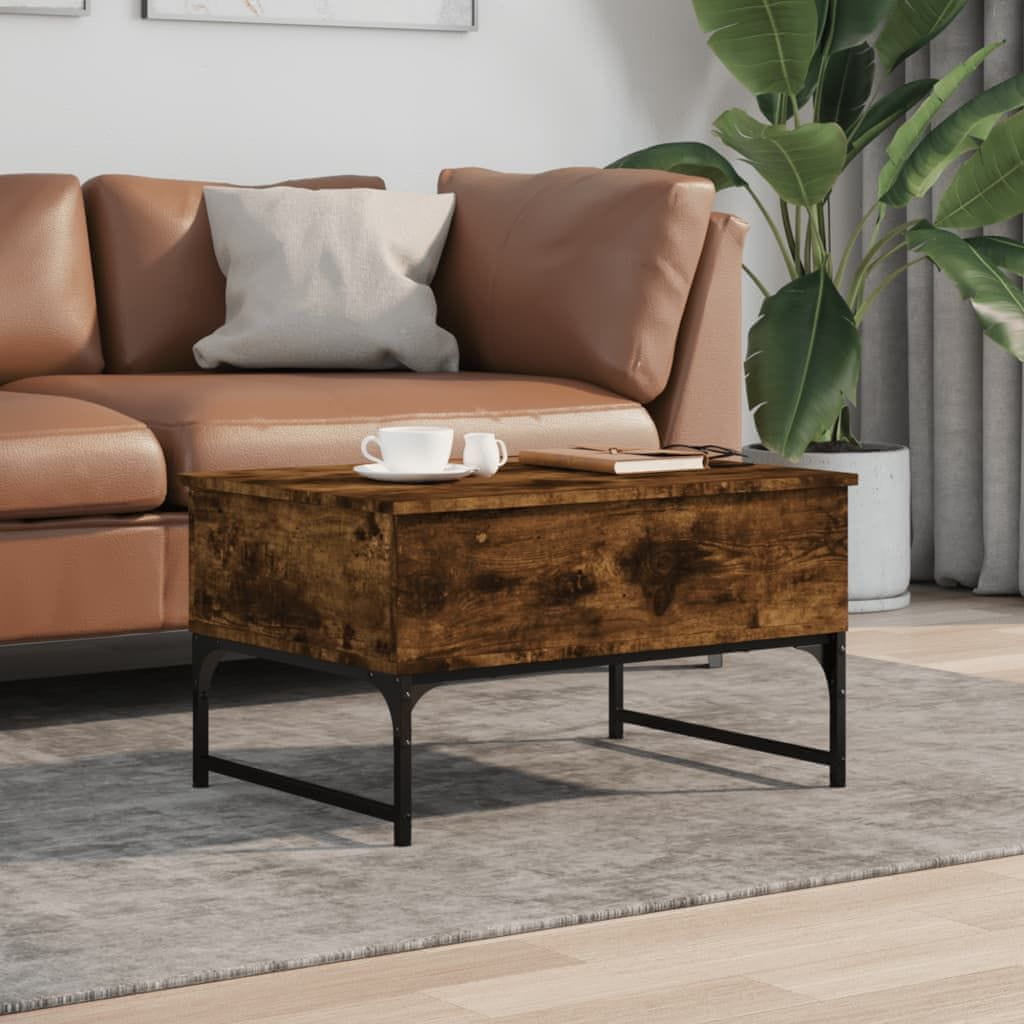 shumee Klubska mizica dimljeni hrast 70x50x40 cm inž. les in kovina