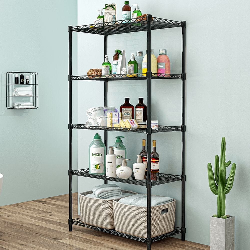 Regal SUER TYP 2 je moderen večnamenski regal v črni barvi, ki zagotavlja dovolj prostora za shranjevanje stvari različnih velikosti. Njene dimenzije (ŠxGxV): 56×35×160 cm. Regal vsebuje 5 polic z nosilnostjo 10 kg na polico. Skupna nosilnost police je 40 kg. Izdelan je iz kovine in dostavljen razstavljen.
