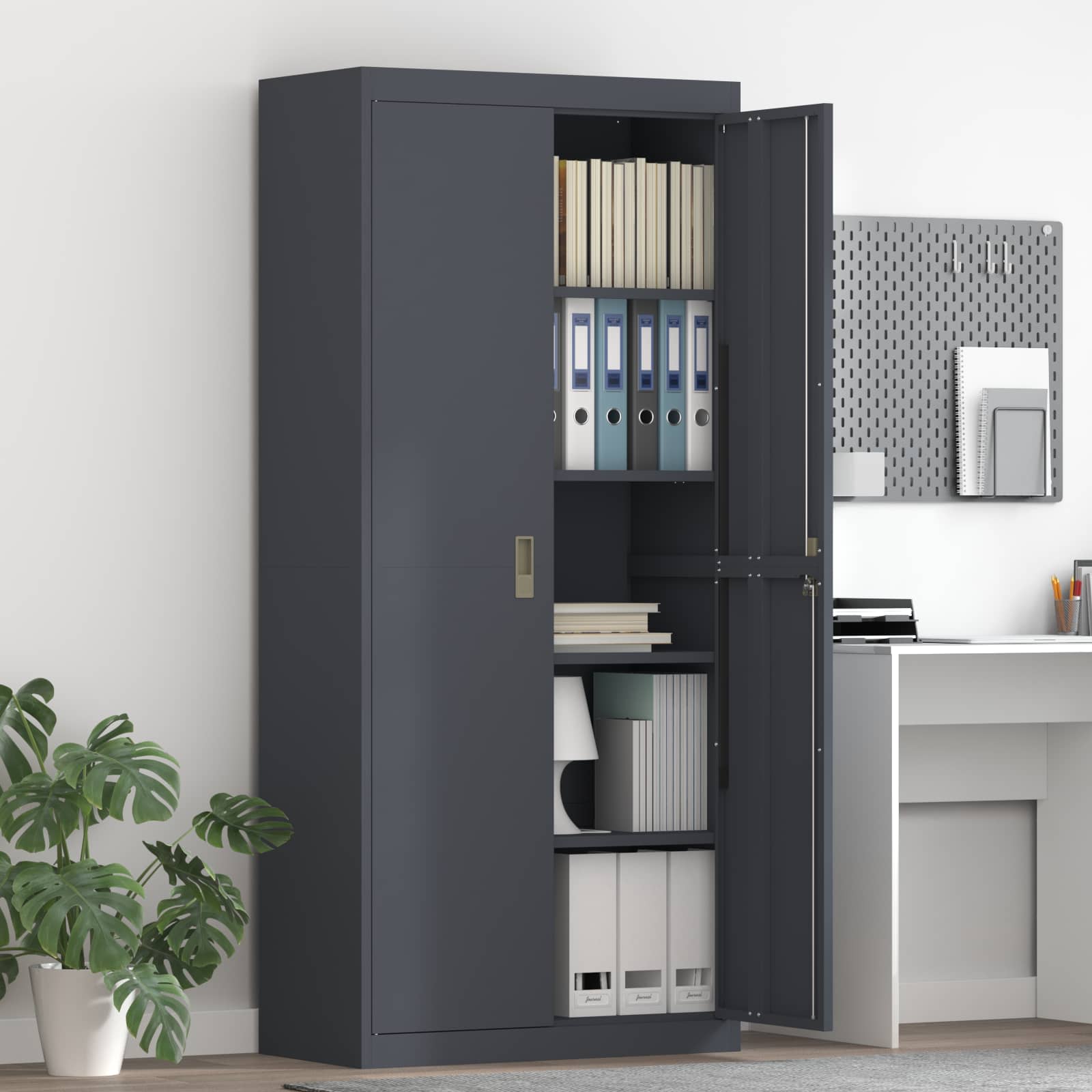 • Učinkovit shranjevalni dizajn Zasnovana je za optimalno izkoriščen prostor, omara pa sprejme raznolike pisarniške potrebščine. Od datotek do pisarniškega materiala, pametna zasnova ponuja obilico prostora, kar je nepogrešljivo za organizacijo v poklicnih nastavitvah.