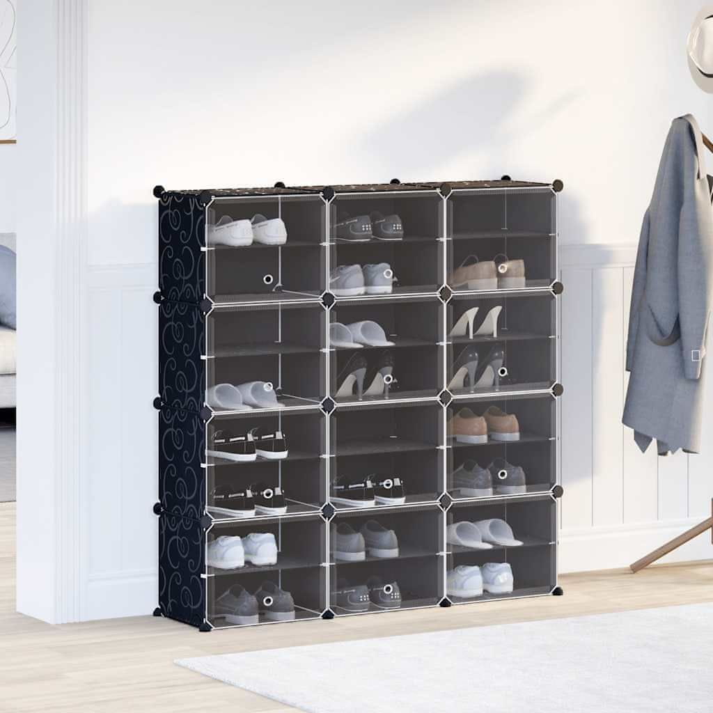 Vidaxl Organizator za shranjevanje kock z 12 kockami in vrati Black PP