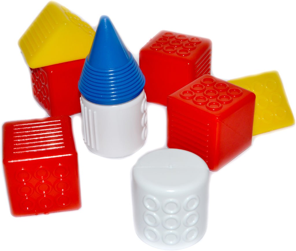 Komplet 9 kosov barvnih plastičnih kock za najmanjše otroke. Celoten opis